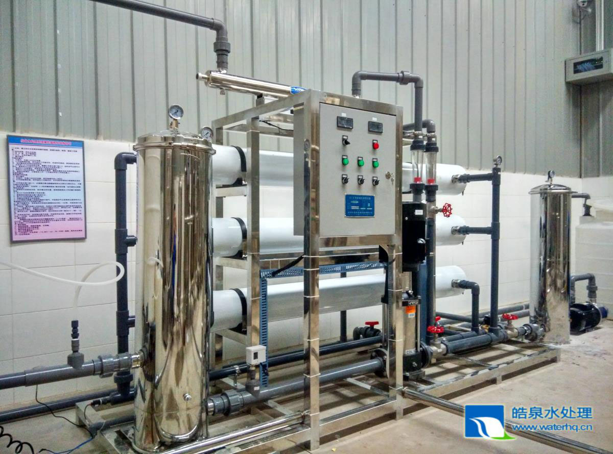 反滲透膜設(shè)備利用RO膜的高脫鹽性能能徹底除去過(guò)去純水制造工藝中較難去除的TOC,SiO2、微粒子及細(xì)菌。同時(shí),又徹底省掉離子交換再生酸堿消耗、免除酸堿排污污染及避免離子交換層中細(xì)菌、有機(jī)物的二次污染。經(jīng)反滲透處理后的水,能去除99%以上的溶解性固體,99%以上的有機(jī)物及膠體,幾乎100%的細(xì)菌。