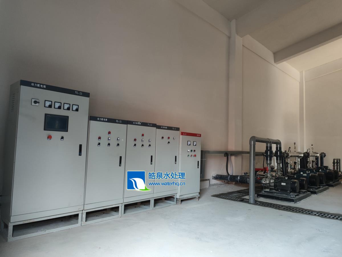 從原水箱中抽水,用于提升原水供水壓力,滿足后續(xù)處理設(shè)備正常運行需要的壓力和流量。原水泵與原水箱上的水位開關(guān)聯(lián)動,當(dāng)原水箱處于低水位時,原水泵停止輸送,避免原水泵在無水狀態(tài)下工作而損壞。